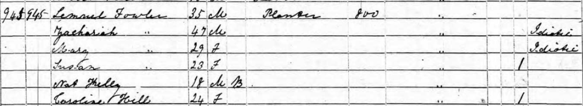 - Lemuel Fowler, Zachariah Fowler, Mary Fowler, Susan Fowler (I believe these all to be Jasper’s children; Zachariah and Mary are listed as idiotic)