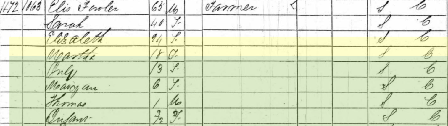 Ellis and Mary, unfortunately, did not leave wills, nor can I find any estate settlement for them. They were listed as “paupers” on the 1850 census, and perhaps had little to leave their offspring. Ellis Fowler died after the 1850 census, and was not recorded in 1860.