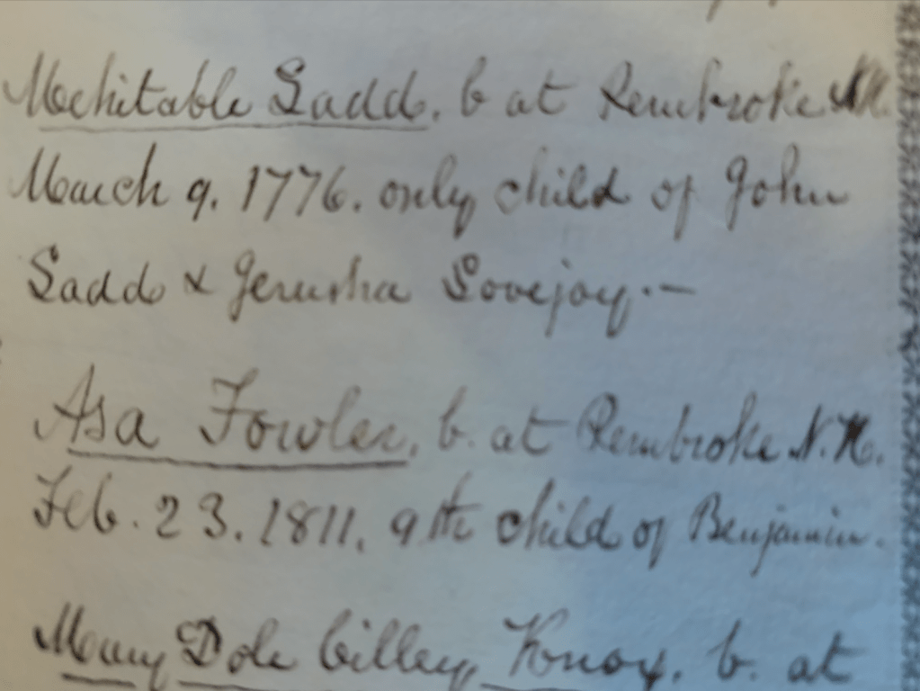 7. I am the 3rd great granddaughter of Trueworthy Fowler, younger brother of Asa’s. My grandfather Donald L Fowler who passed at 95 on Feb 14 2010 was born and raised in the house his father my great grandfather Martin built next door to the family homestead that Trueworthy built and my 2nd great grandfather Henry T took over after Trueworthy passed and held ownership until his death. The homestead is now back in Fowler ownership by my 2nd cousin Steve and his wife Patty Fowler that they converted into 55 and older living. You truly hold a major Fowler find!! Both my 2nd cousin Steve and I are big historians of the Fowler line. He and his wife Patty still reside in Pembroke,NH