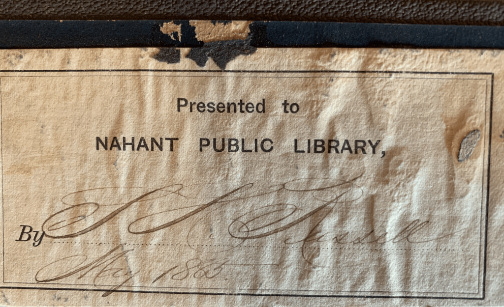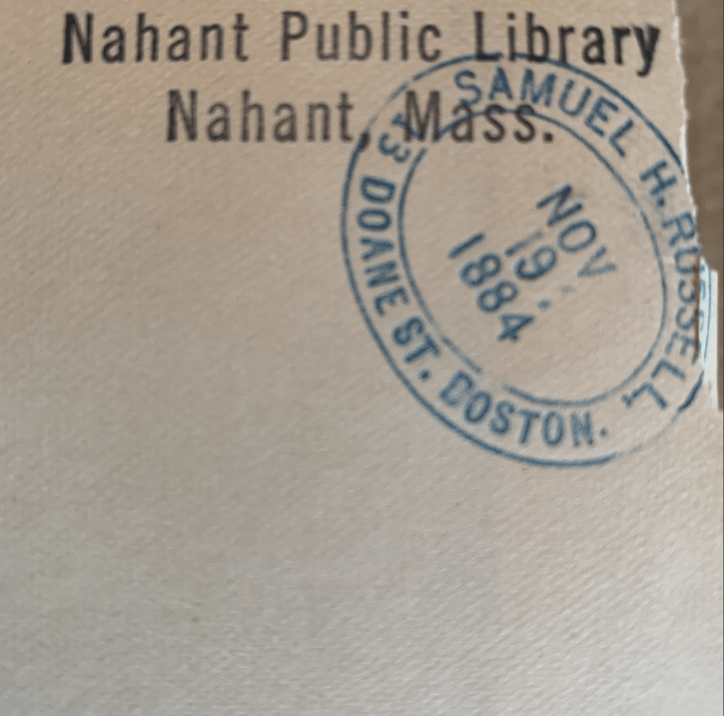 The book was donated to the Nahant Public Library in 1884 by Samuel Hammond Russell (1823-1894). Nahant is a tiny resort beach town in Essex County, about 20 miles from Boston. Samuel H. Russell came from an educated, prominent family in Boston. I have not researched to see if he was related to Philip Fowler.