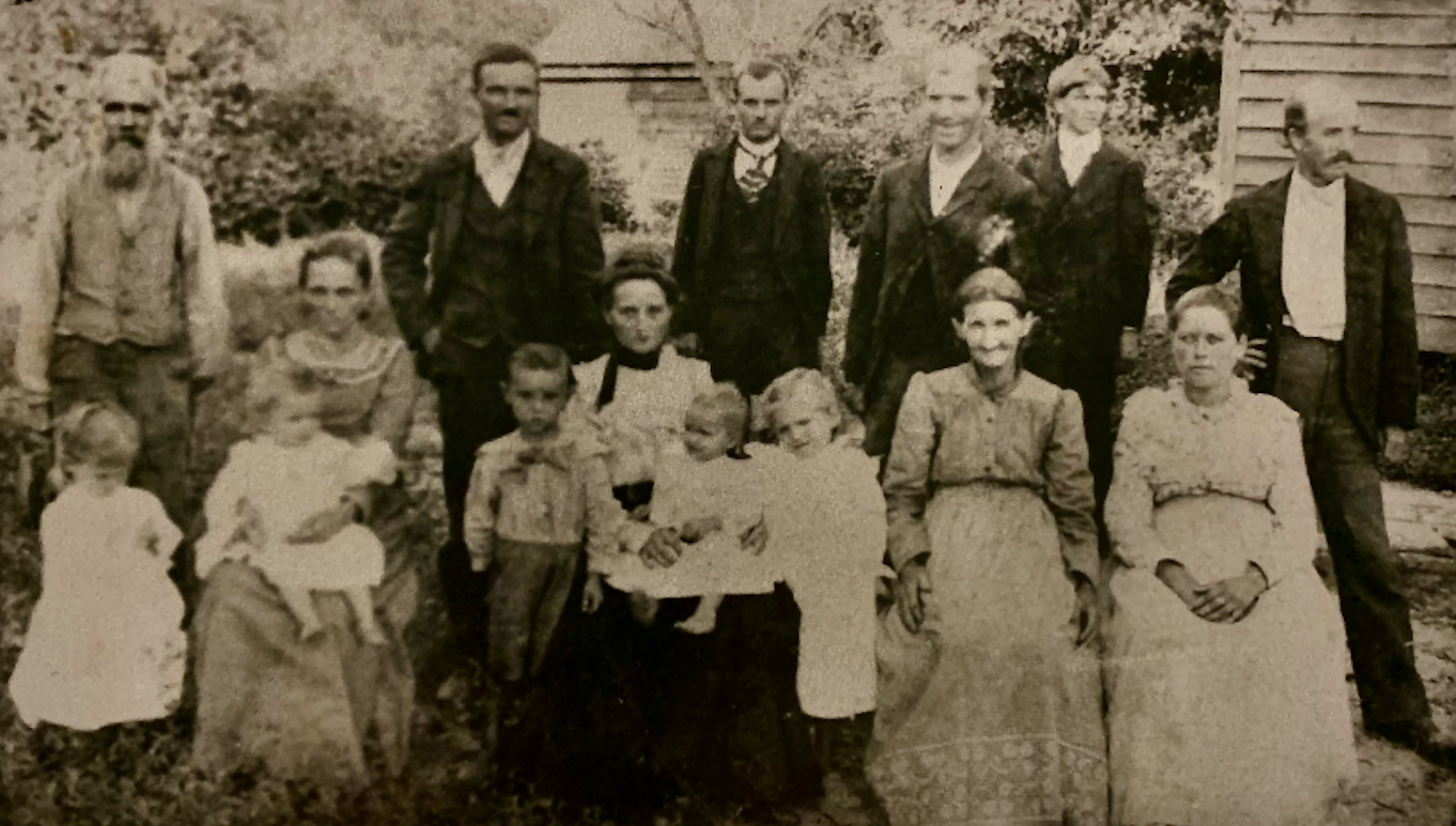 Simeon Godfrey Jacob Roof. He’s the elderly man with the gray beard standing on the back row to the far left. He is my great great great grandfather. This photograph was taken circa 1904/1905. This image is more valuable to me than a pot of gold. It is a family treasure.