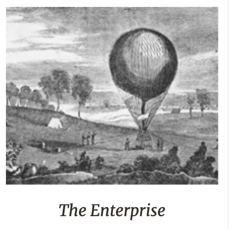 Thaddeus Lowe became interested in aviation, as in hot air balloons, and he studied the art and science of balloon building. He also became interested in Leontine Augustine Gaschon, a 19 year old actress from Paris whom he married in 1855. His newly-wed wife supported his balloon building endeavors and he built his first balloon in 1857, His second balloon, The Enterprise, was finished in 1858.