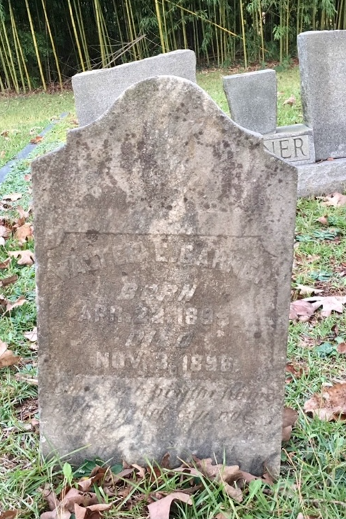 A daughter named Bettie was born, and I have her date of birth as 1870. It is possible that she was a twin to her brother Walter. It is also possible that I have the incorrect date of birth for her. Bettie married a man with the surname of Jackson, and they had a son, Jessie C. Jackson. Bettie died in Trough Shoals (Pacolet Mills, SC) on April 7, 1894. She was buried at Gilead..