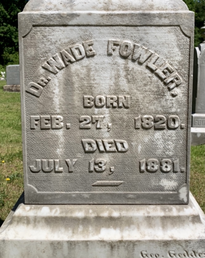 Dr. Wade Fowler (1820-1881) was the son of James Fowler, and the grandson of Godfrey Fowler. He married Elizabeth A. Carothers.