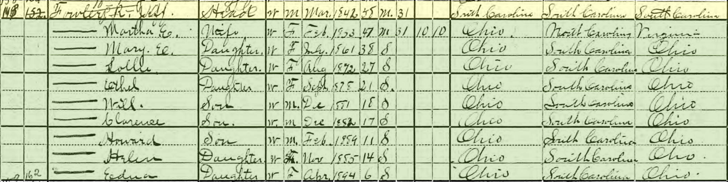 Although her obituary states that she was born in 1860, the 1870 census indicates that Mary Elizabeth Fowler was born in July 1870. Given that her father was not in Ohio until 1863, and did not marry until 1870, I shall assume that the 1860 date in the obituary was a typographical error.