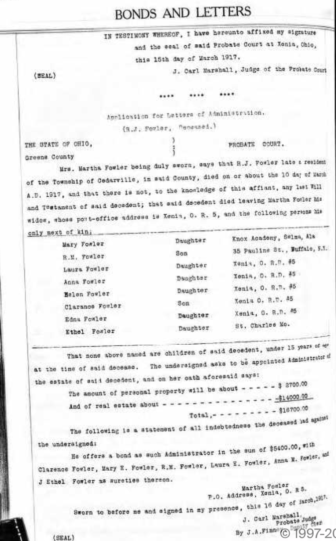 The year 1900 found that the Richard Fowler family had stayed in Greene County, Ohio, and more children had been born.