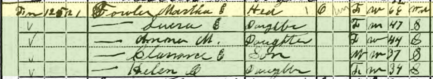 The Richard Fowler family of 1910 remained the same with two exceptions: son William Leonard Fowler had died in 1902, and son Richard McMillan Fowler had married and left the household.