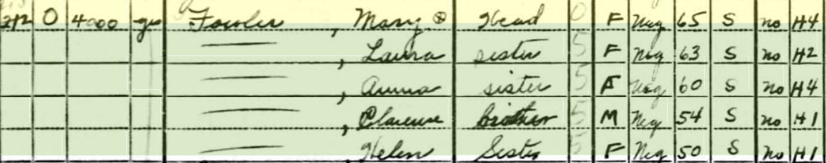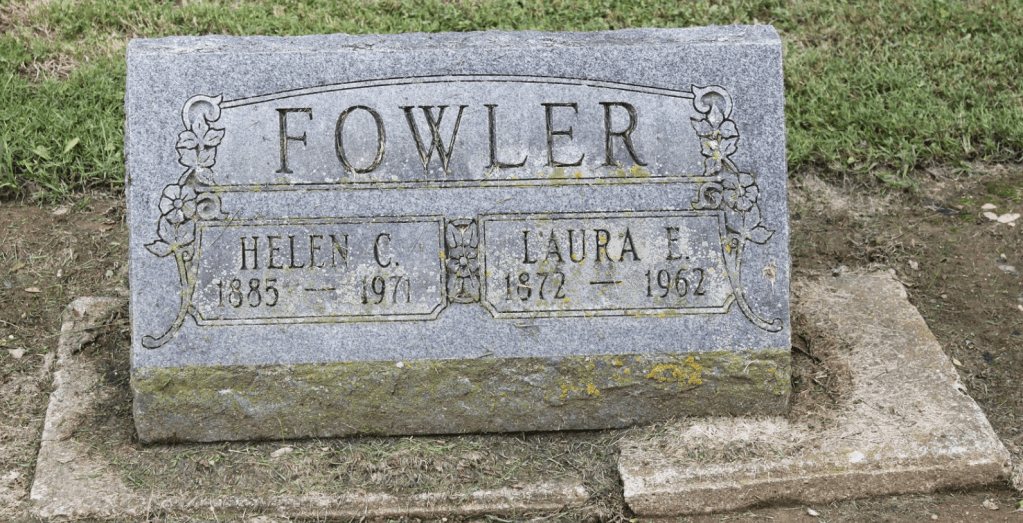 Laura Ellen Fowler may have stayed at home taking care of her mother, and later, her siblings and brother Clarence. There is no indication that she ever worked outside the family home where she spent her almost ninety years. There is evidence that she was very close to her sister Helen. The two sisters lived together and share a headstone in Massies Creek Cemetery.