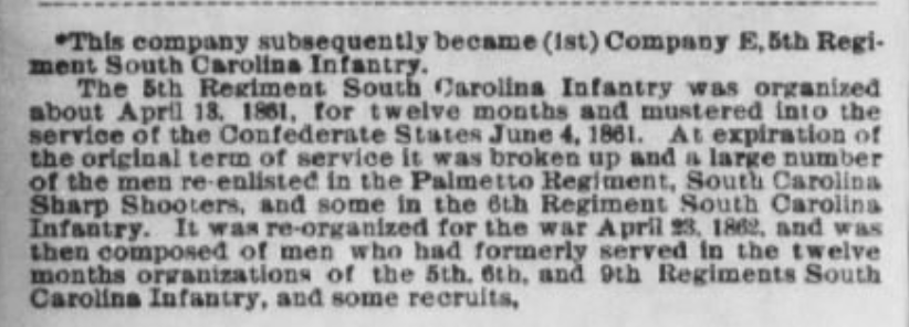 On April 14, 1861, at the Union County Court House, Elias Fowler joined W.J.T. Glen’s Company, 5th Regiment of South Carolina Volunteers. This unit later became known as the 5th Regiment SC Infantry Company E. He was mustered into service on June 4, 1861 in Orangeburg SC.
