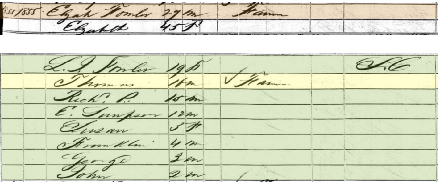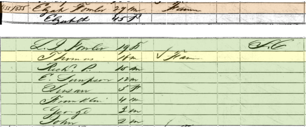 Sixteen-year-old Thomas Fowler was in his father’s household in Spartanburg County in 1850: