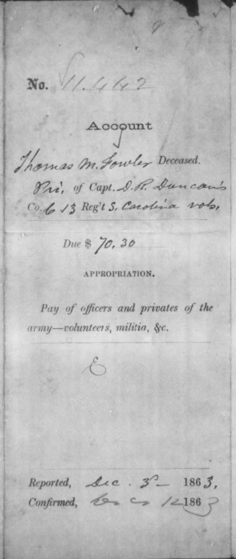 Thomas M. Fowler died on January 15, 1863 in Haywood County, North Carolina from his injuries. His father Eli Fowler had moved there after 1860, and his son had come home to die.