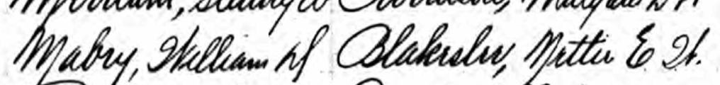 The name of the groom, William D. Mabry, and his bride, Nettie E. Blakeslee: