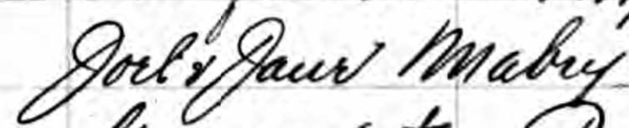 Father and mother of the groom listed in the marriage register: Joel & Jane Mabry: