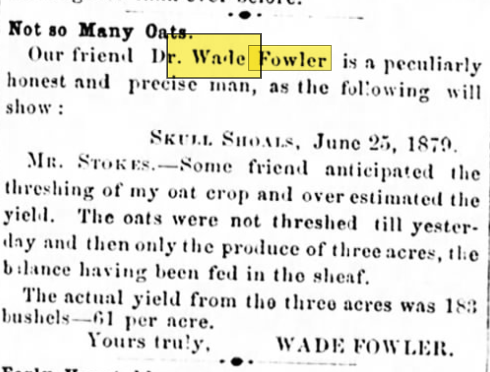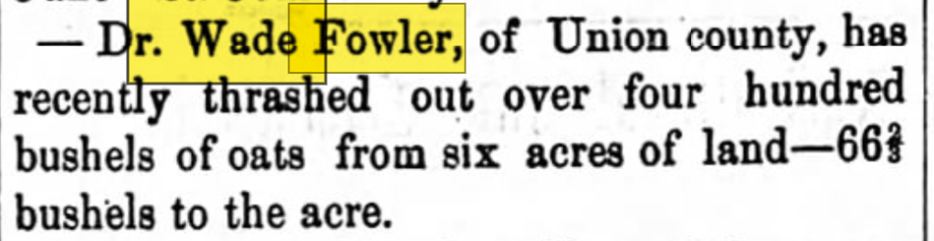 Dr. Wade Fowler was a leader in making the switch from cotton to wheat. His good standing in the community was rewarded with the good press he received from the local newspaper regarding his new farming methods.
