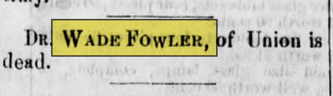 I find no records that Dr. Wade Fowler served in the Civil War. He was forty-one years old when the war began, perhaps too old to go into battle, perhaps he was needed more at home.
