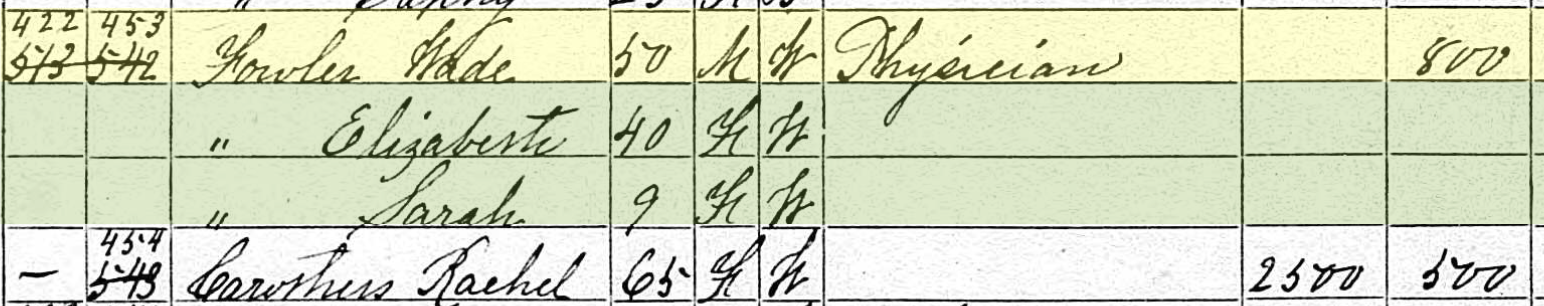 Dr. Wade Fowler married well. Elizabeth was the daughter of John Carothers (1775–1854) and his second wife, Rachel Ross Burrows (1805–1890).
