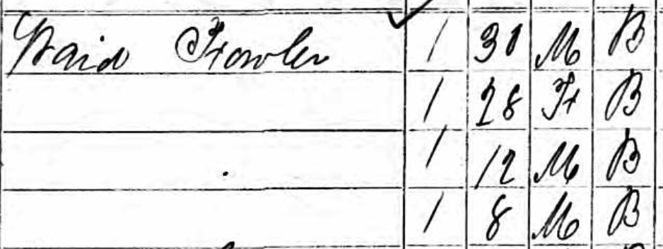 Dr. Wade Fowler had enslaved people in his household. The Slave schedules confirm one adult female and one male child in 1850; and one adult male, one adult female, and two male children in 1860.