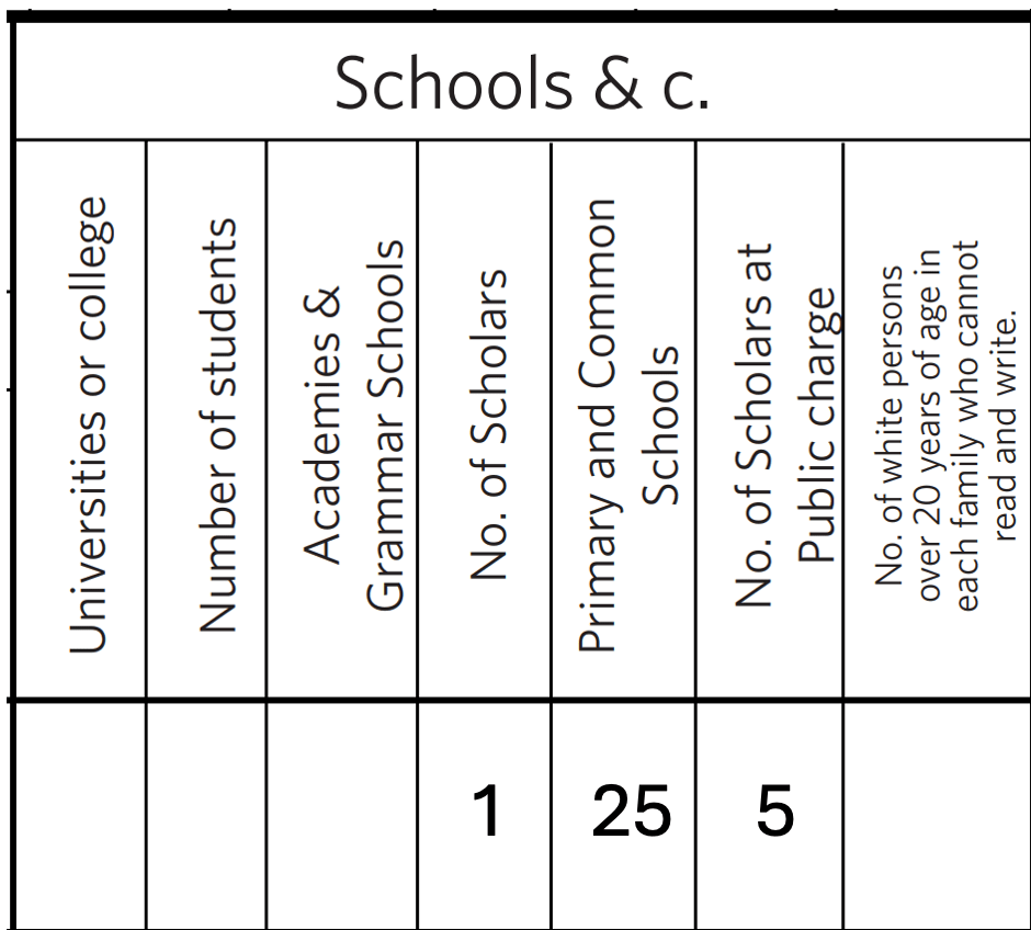 My interpretation of this data on the 1840 census is that Wade Fowler had a school with 25 students. I do not know if I am correct in my assumption. Please comment if you have any thoughts on this matter.