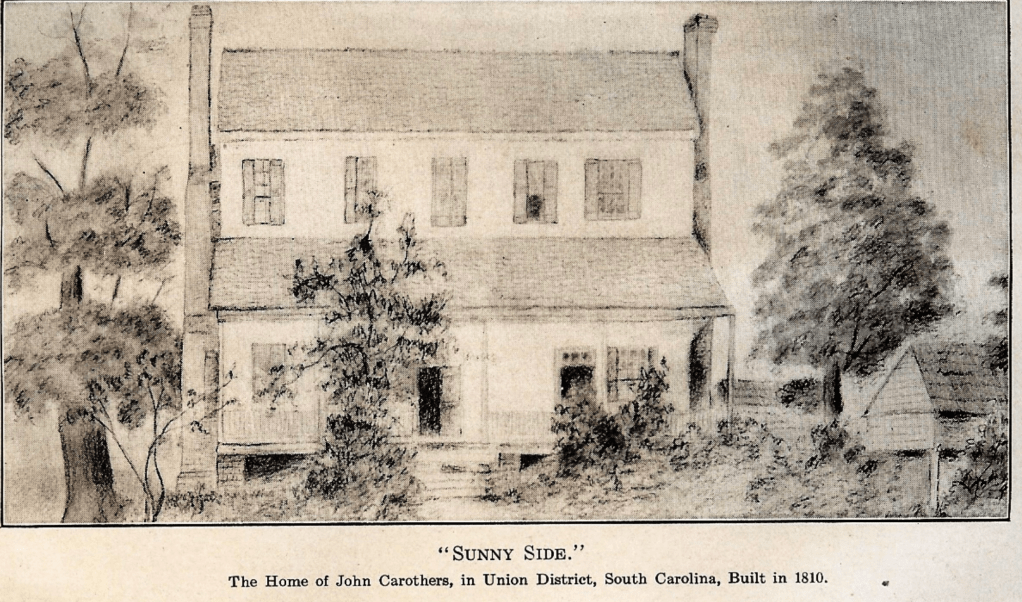 After the 1854 death of John Carothers, Wade Fowler, wife Elizabeth and their eight-year-old son John moved into the home called Sunny Side with Elizabeth’s mother, Rachel Ross Burrows Carothers. The house was built in 1810, north of the Pacolet River in Union County, but now in Cherokee County.