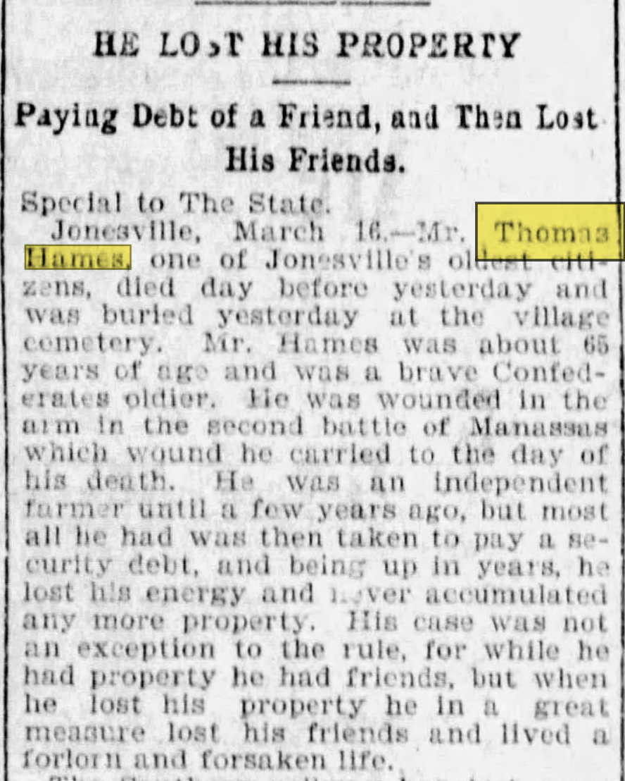 John Gray Hampton was born in 1850. He was murdered by B.F. Bates near Pacolet, SC in 1871. The killing was of a political nature involving Klu Klux Klan activities, radical and democratic misunderstandings. The story warrants its own article which I will write in the very near future.