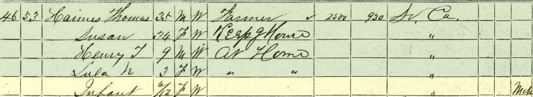 - 1880 • Precinct 3, Grayson, Texas; Occupation: Farmer; (age 66)