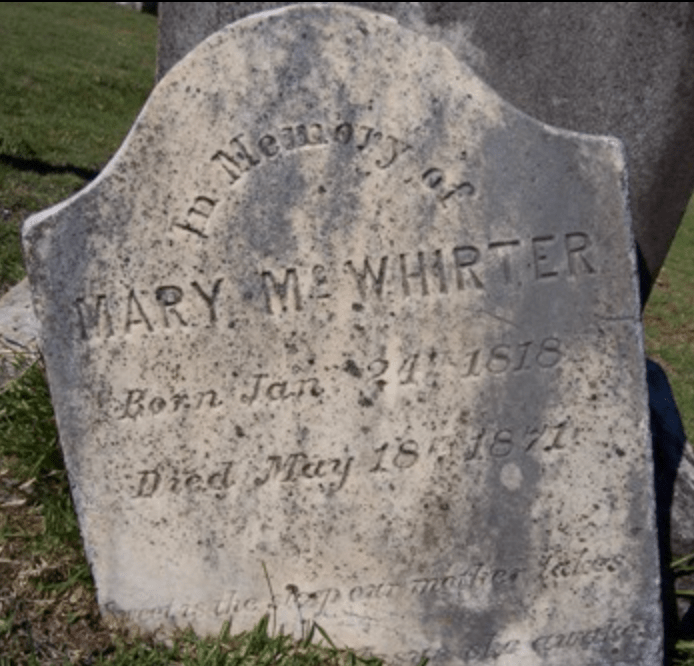 Mary Foster McWhirter birthed two McWhirter sons and four daughters. She also raised the children of first wife Elizabeth Fowler.