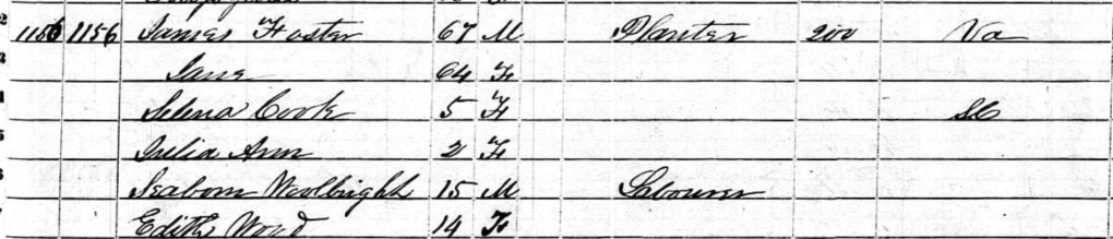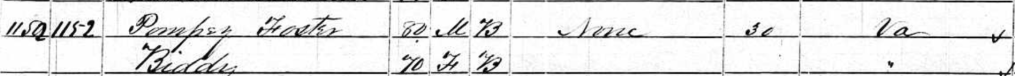 There is another Foster on the same census page: James “Bully Jim” Foster, a white man born in Virginia. Did old Pompey and “Bully Jim” have connections? Did they come down from Virginia together?
