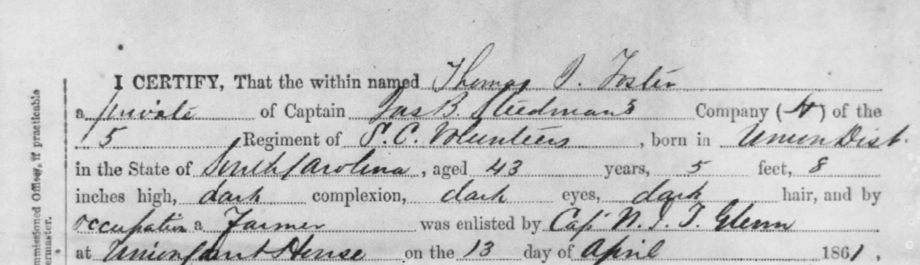 Thomas T. Foster is my great great grandfather. He was born in Union County, SC in 1820.