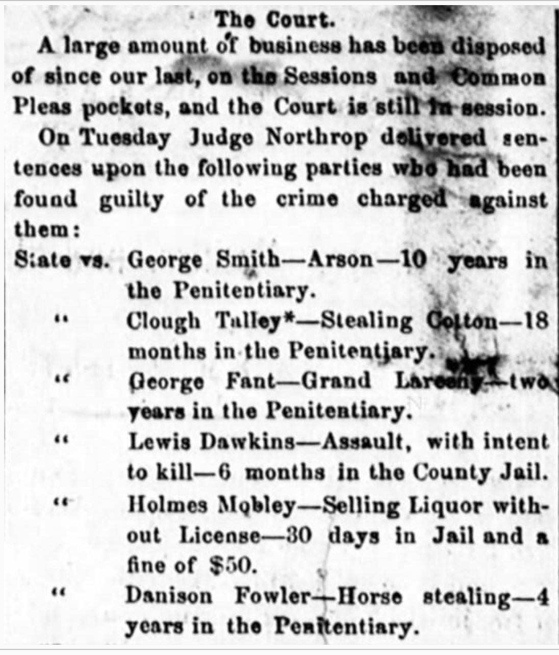 In 1877, Danison Fowler was sentenced to four years in the penitentiary for horse stealing. This would explain the gap between the birth of his first child with Sarah Ann Johnson and the birth of the second one.