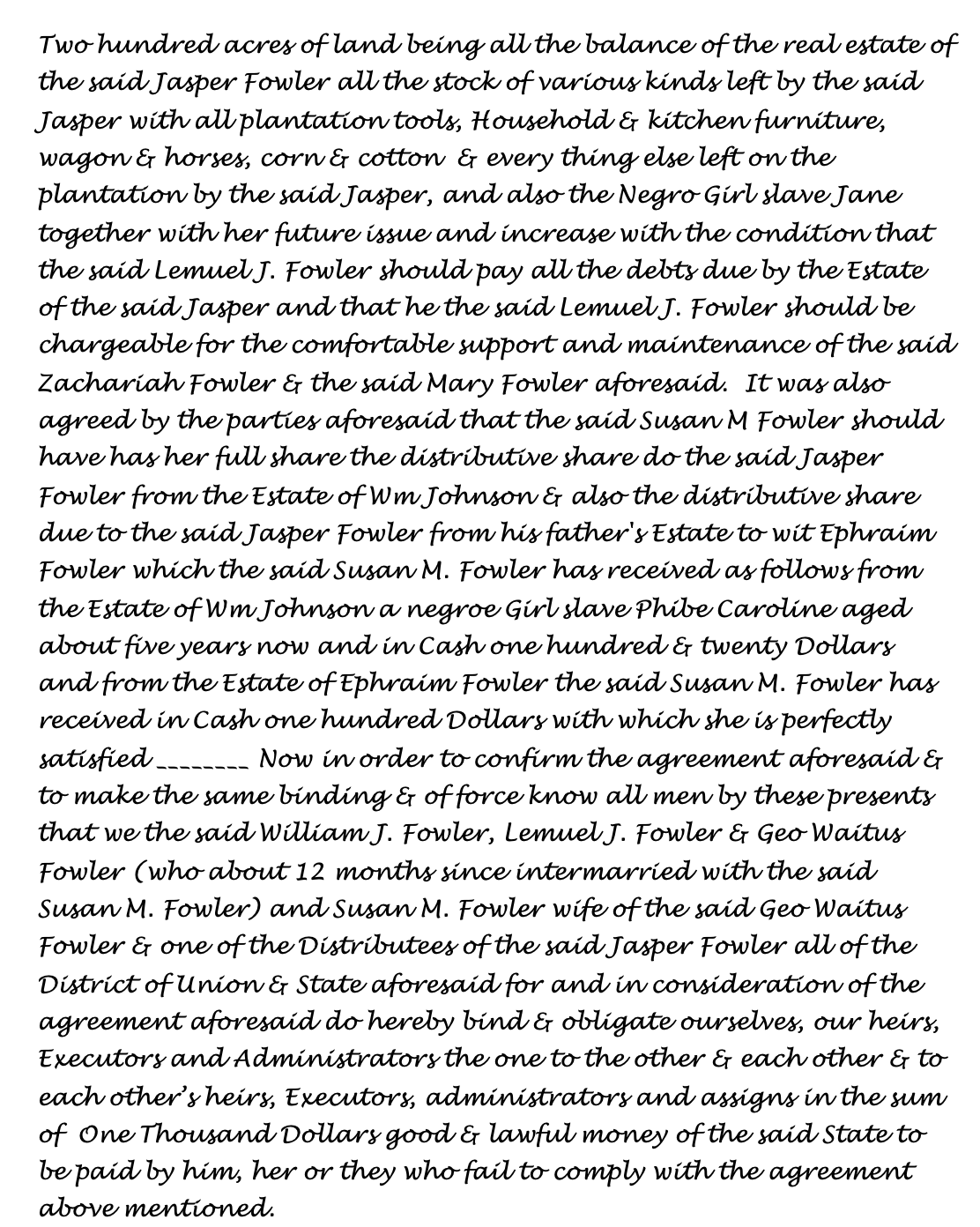 When Susan Fowler, daughter of Jasper, signed her name to a simple, legal document in 1849, I do not think that she could have ever imagined the sheer joy I would feel when my eyes fell upon that document one hundred and sixty-seven years later. Yet, she is part of my journey into the past. Even from her grave, she has helped me put another piece into the wonderful puzzle of my heritage.