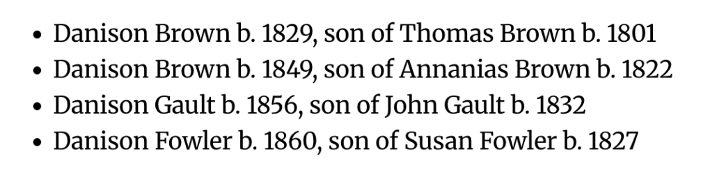 Danison was somewhat of an unusual name in Union County families. In fact, I can only find four instances of the name in the county: