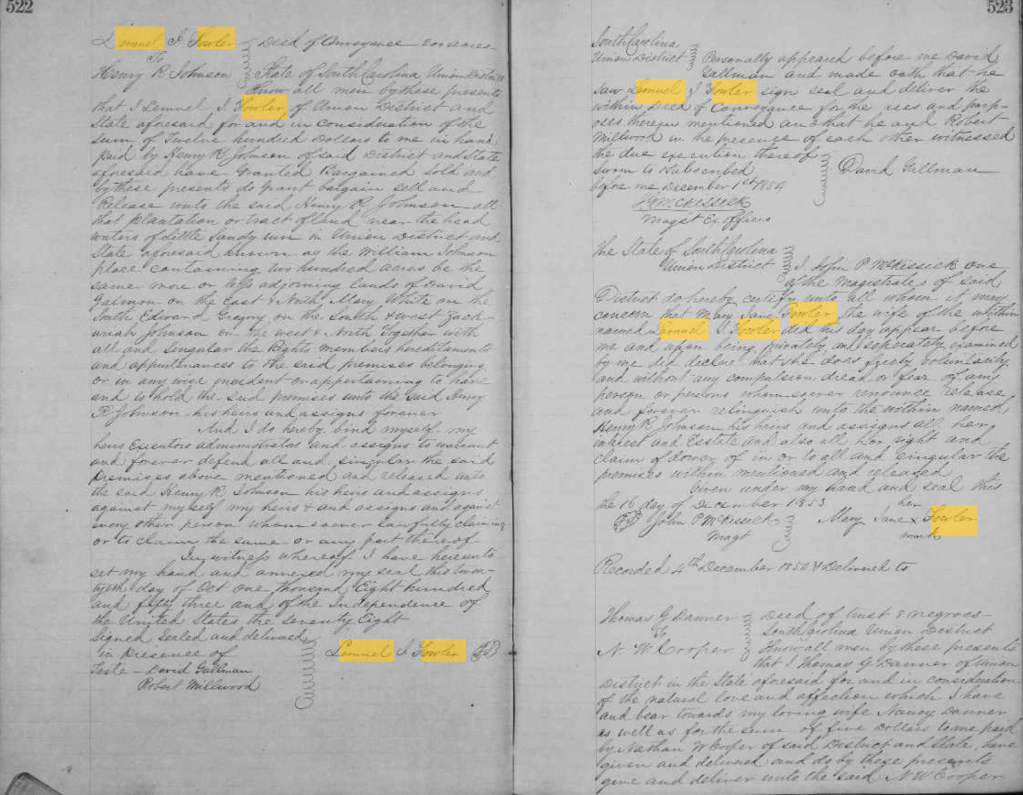 Jordon Johnson moved from Union County, SC to Cherokee County, Georgia. He died in Georgia in 1872.
