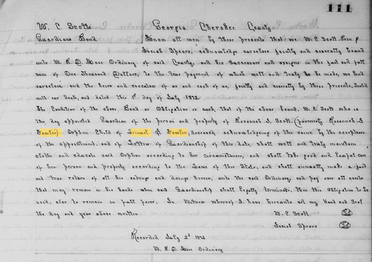 (See my article “The Final Estate Settlement of Ephraim Fowler: Darkas, Mahala, Dorcas and Charlotte”) The Final Estate Settlement of EPHRAIM FOWLER