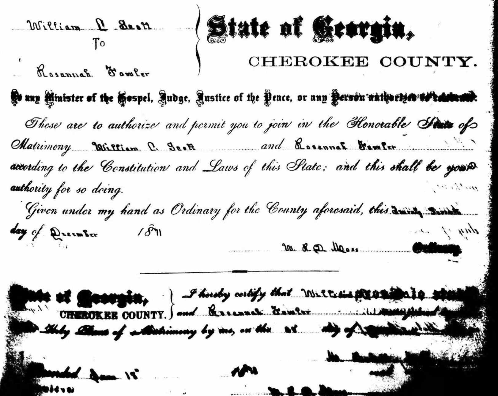 A hint of the origins of William Johnson is contained within the pages of “The Heritage of Cherokee County Georgia 1831-1998.’ (published by the Cherokee County Heritage Book Committee and Don Mills, Inc.)