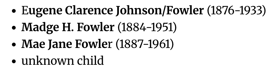 - Madge H. Fowler (1884-1951) m. Horrace H. Jones