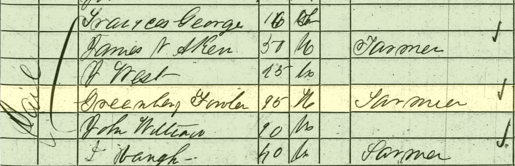It should be said that other families were counted twice in 1820. I am certain that this is what happened with the Jasper Fowler household. And if there were two, one of them disappeared by 1830, never to be seen again.