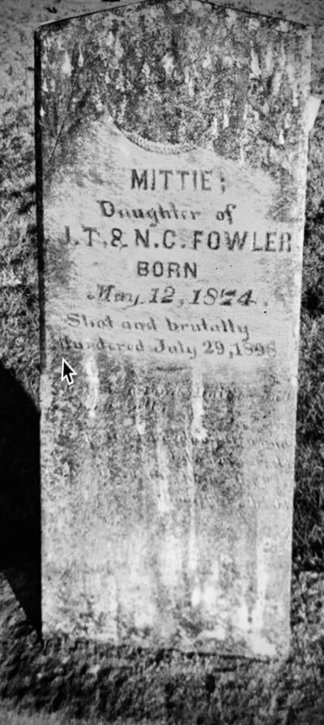 The John Tipton Fowler family had grieved the loss of a child before the brutal murder of their beloved Mittie. They lost their youngest son, Jesse, in 1892. The little boy was barely two years old when they laid him to rest at Gilead Cemetery in Jonesville.