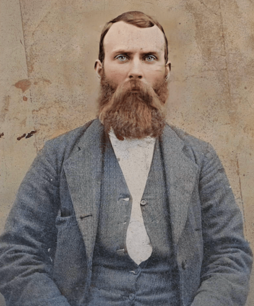 He had red hair, blue eyes, and a “high” complexion. He stood five feet, ten inches tall. Before he became a soldier in the Confederate army, he was a farmer.