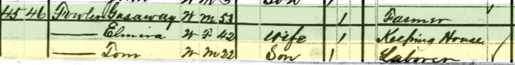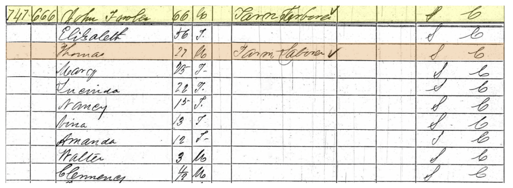 The census record below is the only proof of life I have for Thomas Fowler, born ca. 1833.