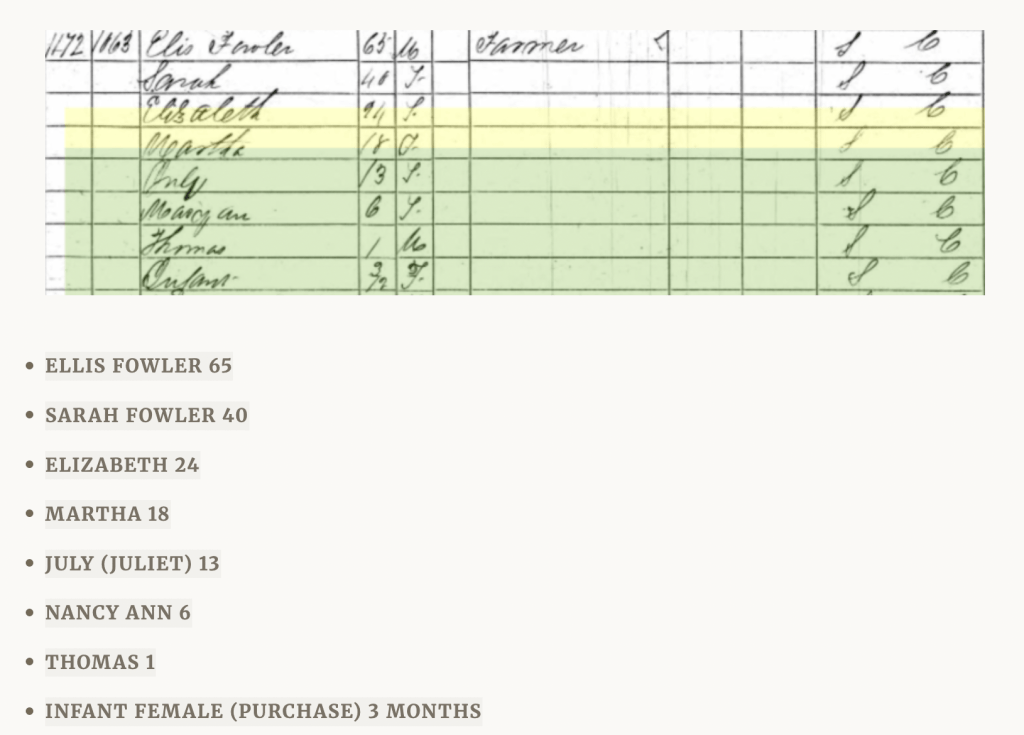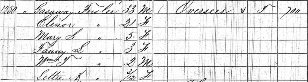 Everything thing else is speculation on my part. It is my theory that John Fowler in this 1860 census record was a son of John Fowler “The Elder” and his wife Fannie.