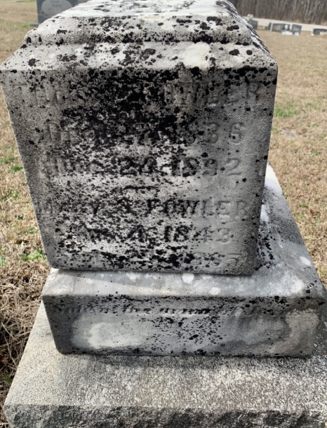 Mary Coleman Fowler died September 29, 1885. Her husband with the red hair died on Christmas Eve: December 24, 1892. Their graves are marked by a single headstone at Gilead Baptist Church Cemetery in Jonesville.