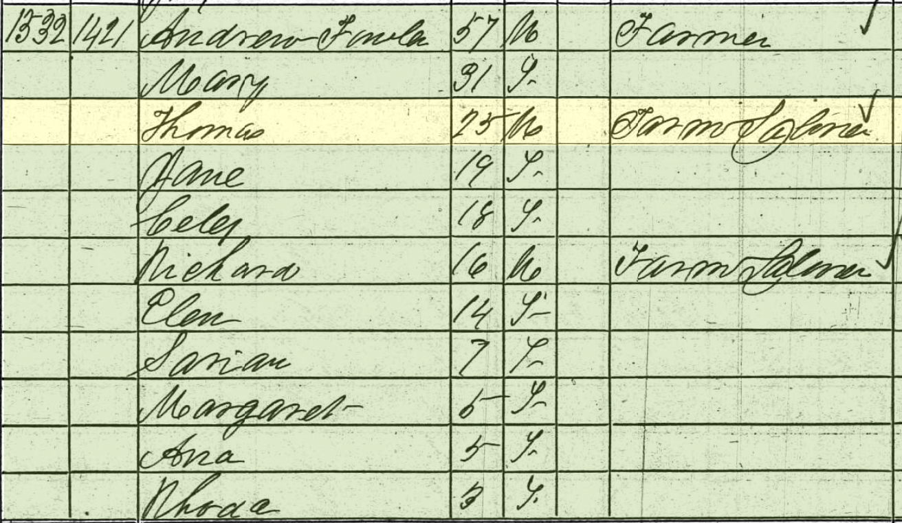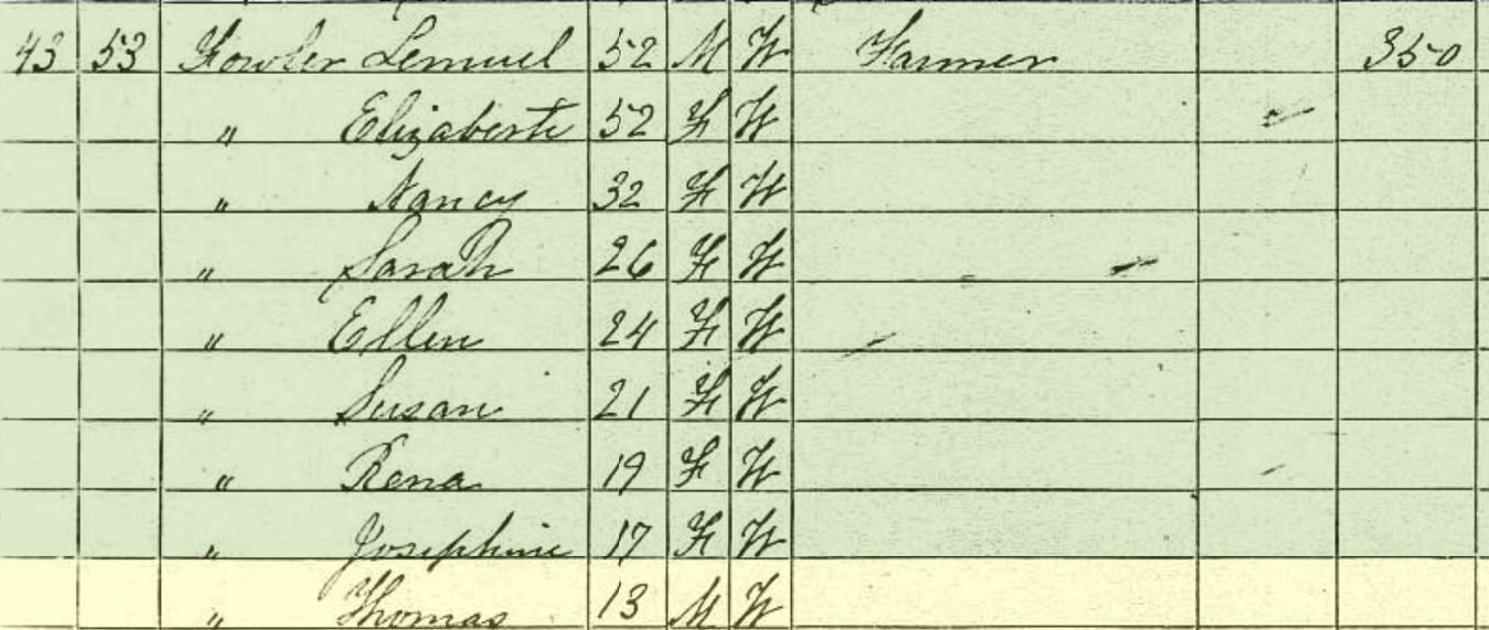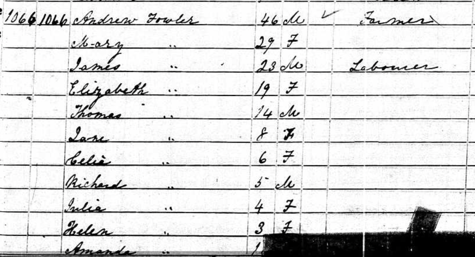 The census record below is the only proof of life I have for Thomas Fowler, born ca. 1833.