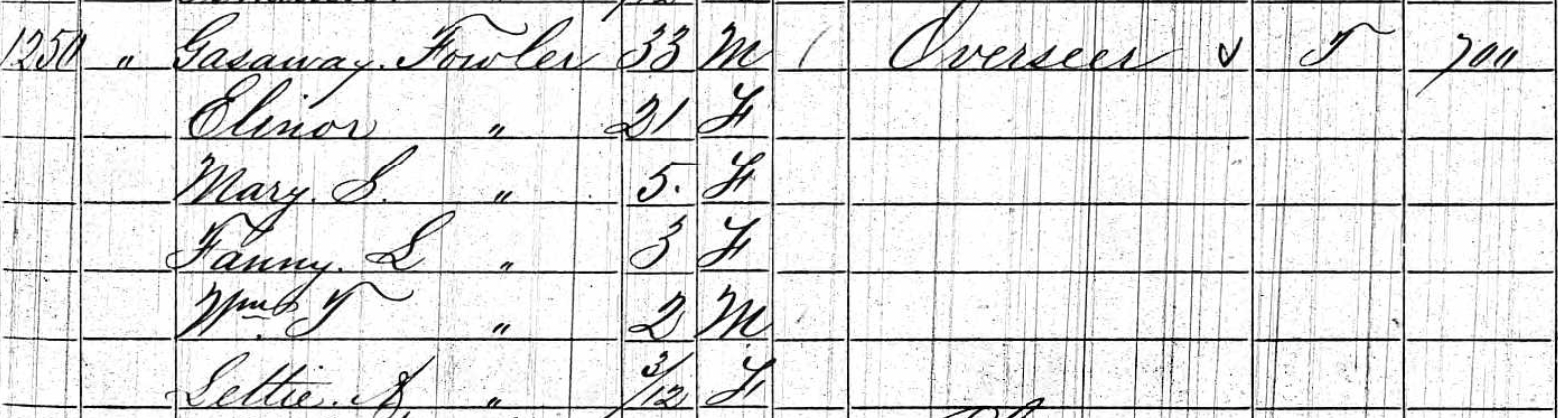 Everything thing else is speculation on my part. It is my theory that John Fowler in this 1860 census record was a son of John Fowler “The Elder” and his wife Fannie.