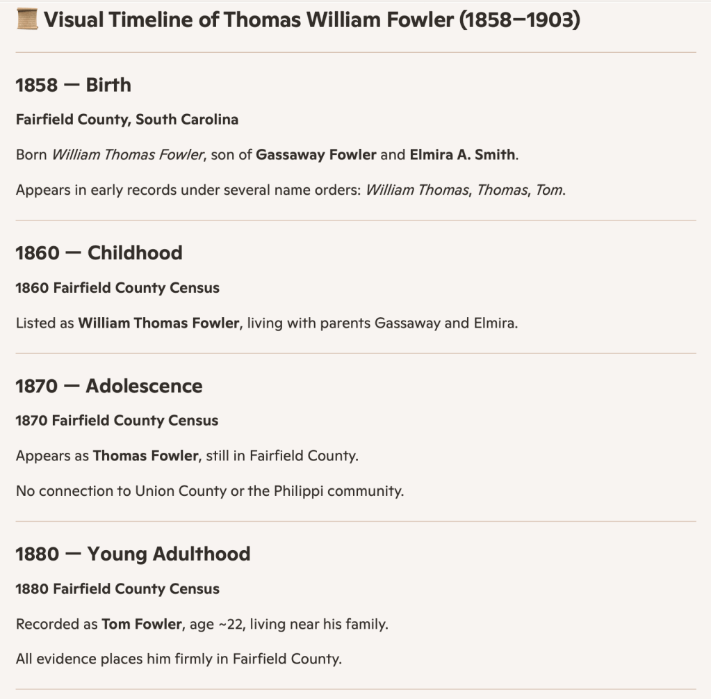 In the end, the truth stands exactly where the records left it, steady as a gravestone in the Carolina light. Two men named Thomas Fowler walked through the nineteenth century, but they walked on different roads, in different counties, toward different destinies.