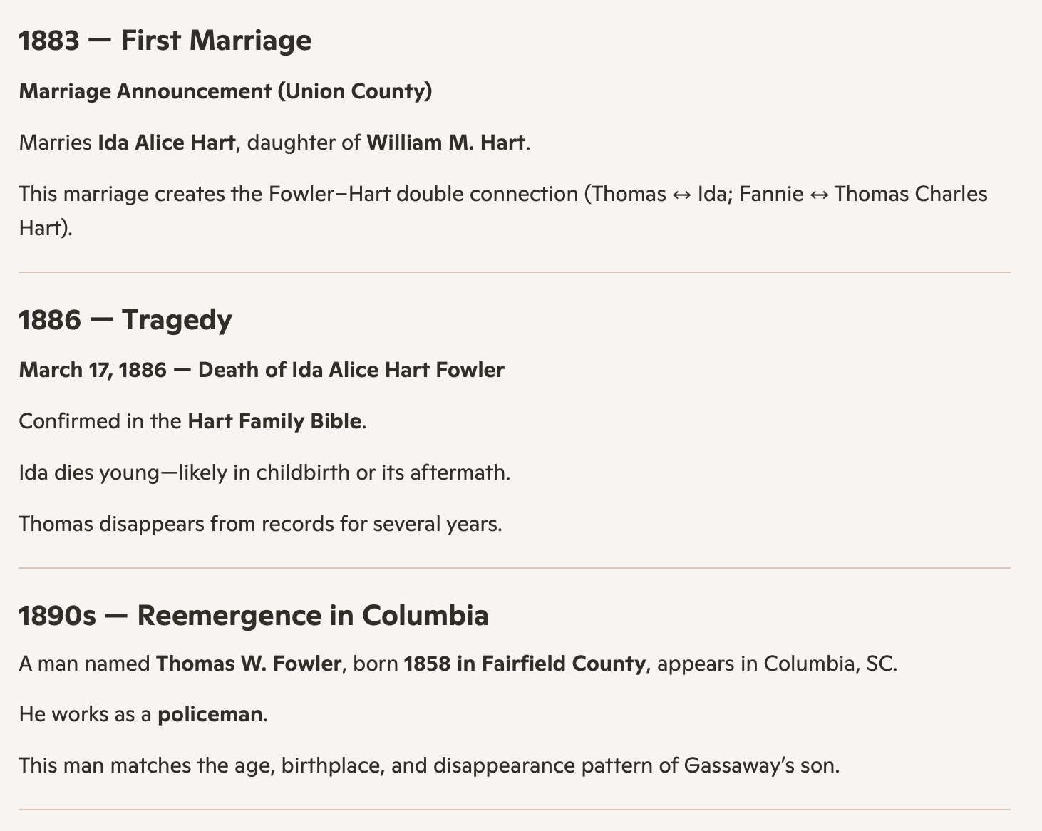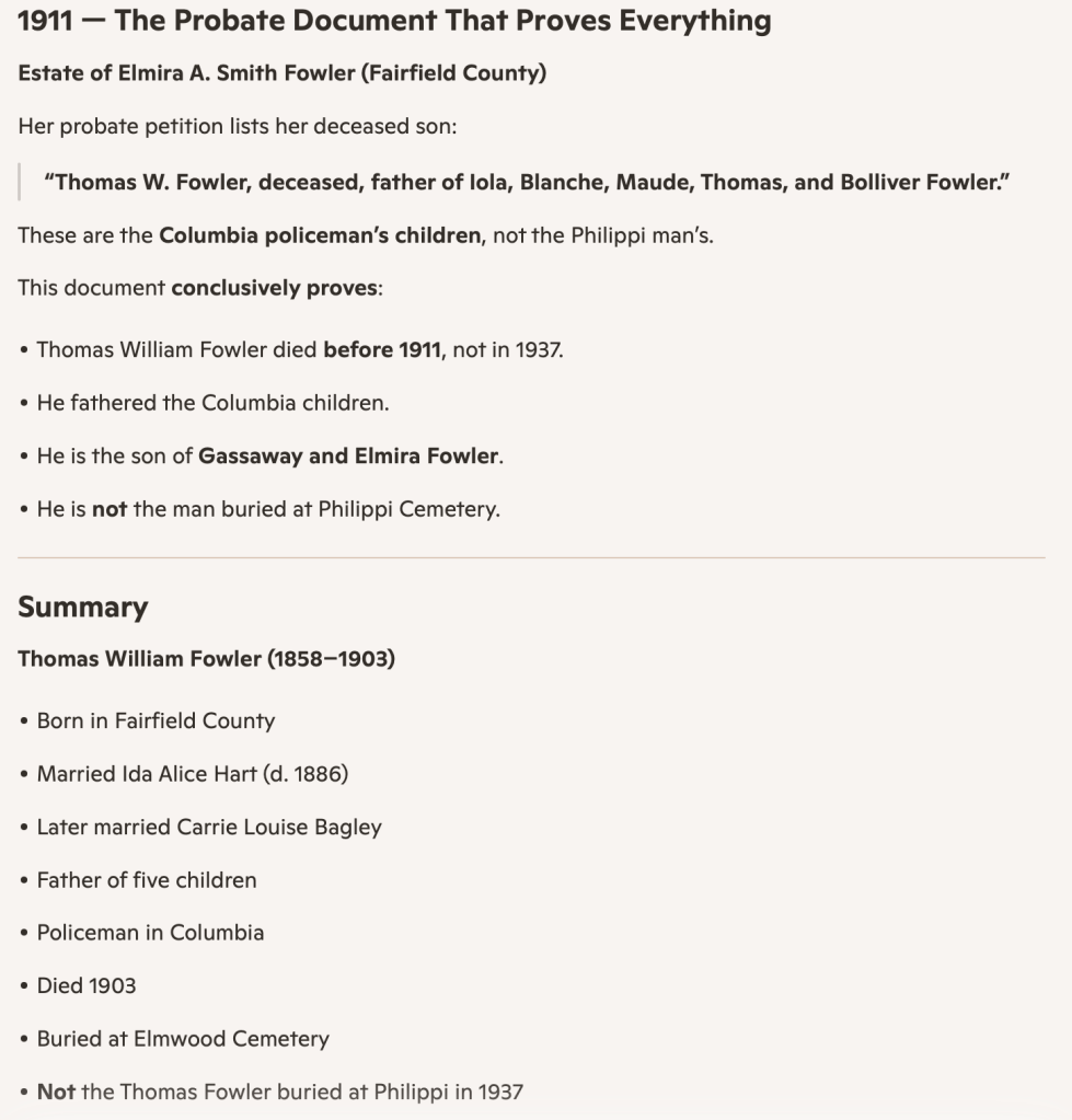 One rests beneath the oaks of Elmwood in Columbia; the other lies in the quiet earth of Philippi. Their stories were never one story at all. And now, with the evidence gathered and the lines restored, each man can return to his rightful place in the Fowler family history—separate, distinct, and finally seen for who he truly was.