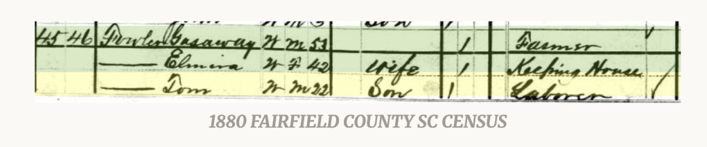 1880 FAIRFIELD COUNTY SC CENSUS